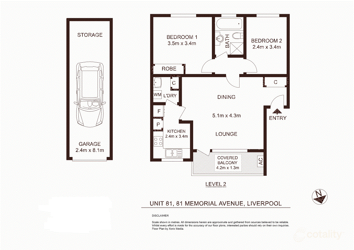 Open plan lounge & dining area with BalconySpacious kitchen/Fresh bathroom2 good size bedrooms with built in robe to mainFloating Floorboards through out / Split System Air Conditioning Internal Laundry/Security building/intercom22m2 Lock up Garage with storage on titleTotal living 70m2OUTGOINGS: