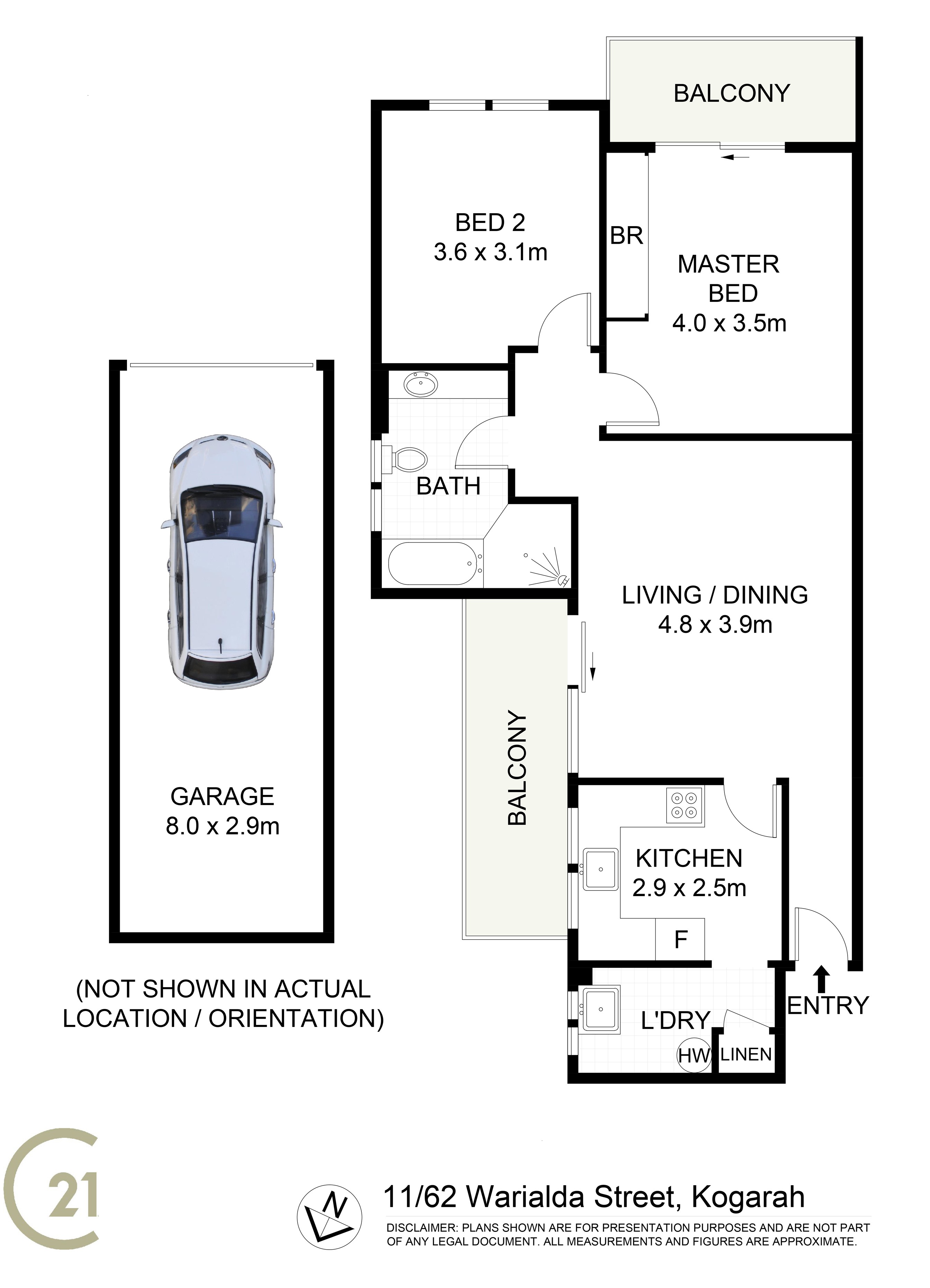 Two bedrooms, main with built-in wardrobe and balconyFloorboards throughoutSpacious combined lounge and dining areaStrata is approx. $969 and council is approx. $435 per quarterSize is approx. 82 sqm + large 24 sqm garage