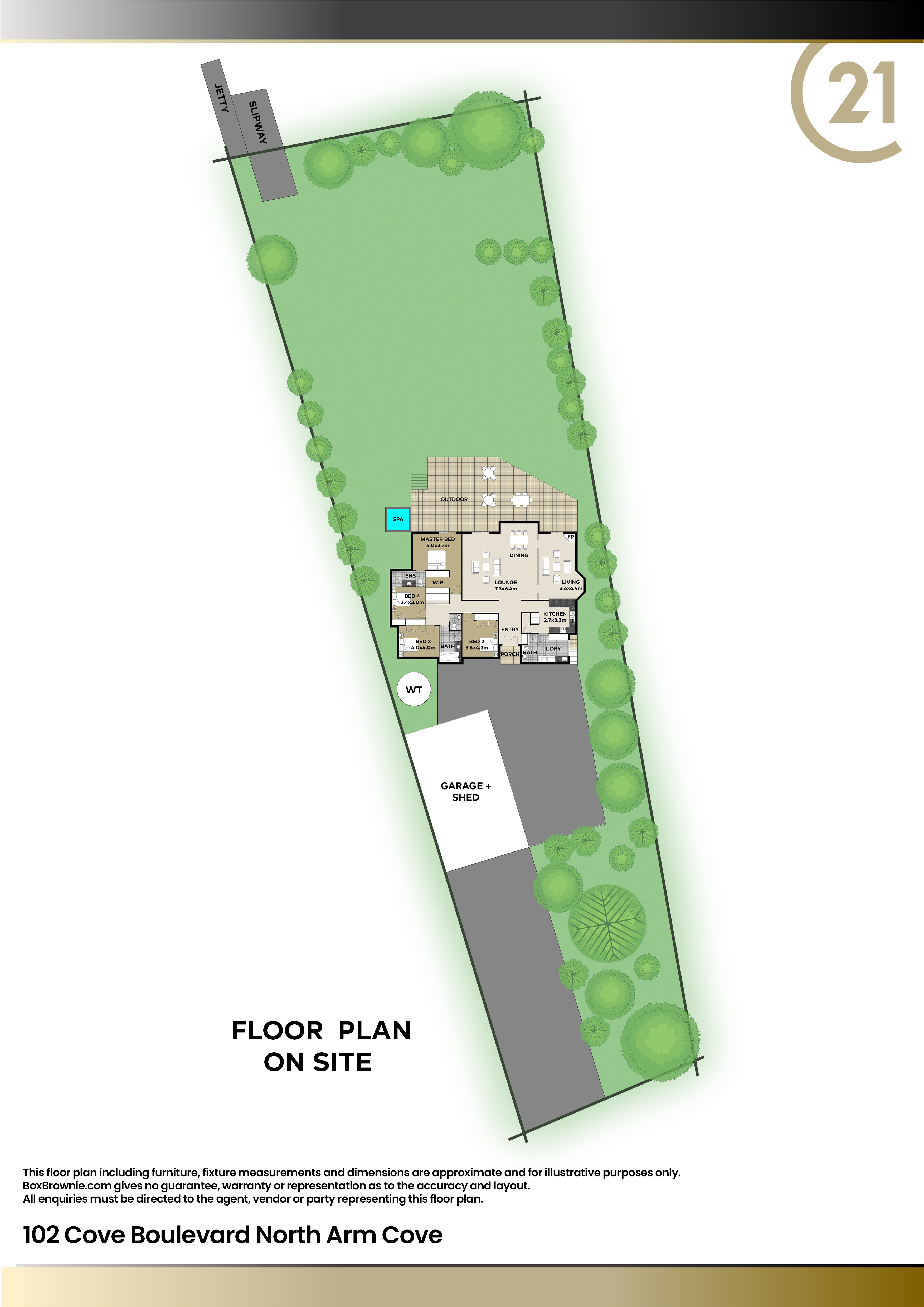 Imagine stepping into your own slice of paradise, where the view stretches across the serene bay, dotted with boats anchored in quiet repose. Soldiers Point Marina gleams in the distance, while leisure boats and fishermen add a touch of movement to the idyllic harbour scene. The land itself is gently sloped, leading effortlessly down to the extensive waterfront features. Here, a natural 'jetty', concrete slipway, seawall, and sandy foreshore invite endless opportunities for relaxation and recreation, including a refreshing swim in the bay's cooling waters. For moments of leisure, a charming cabana awaits, perfect for unwinding with a glass of wine as the day fades into night.