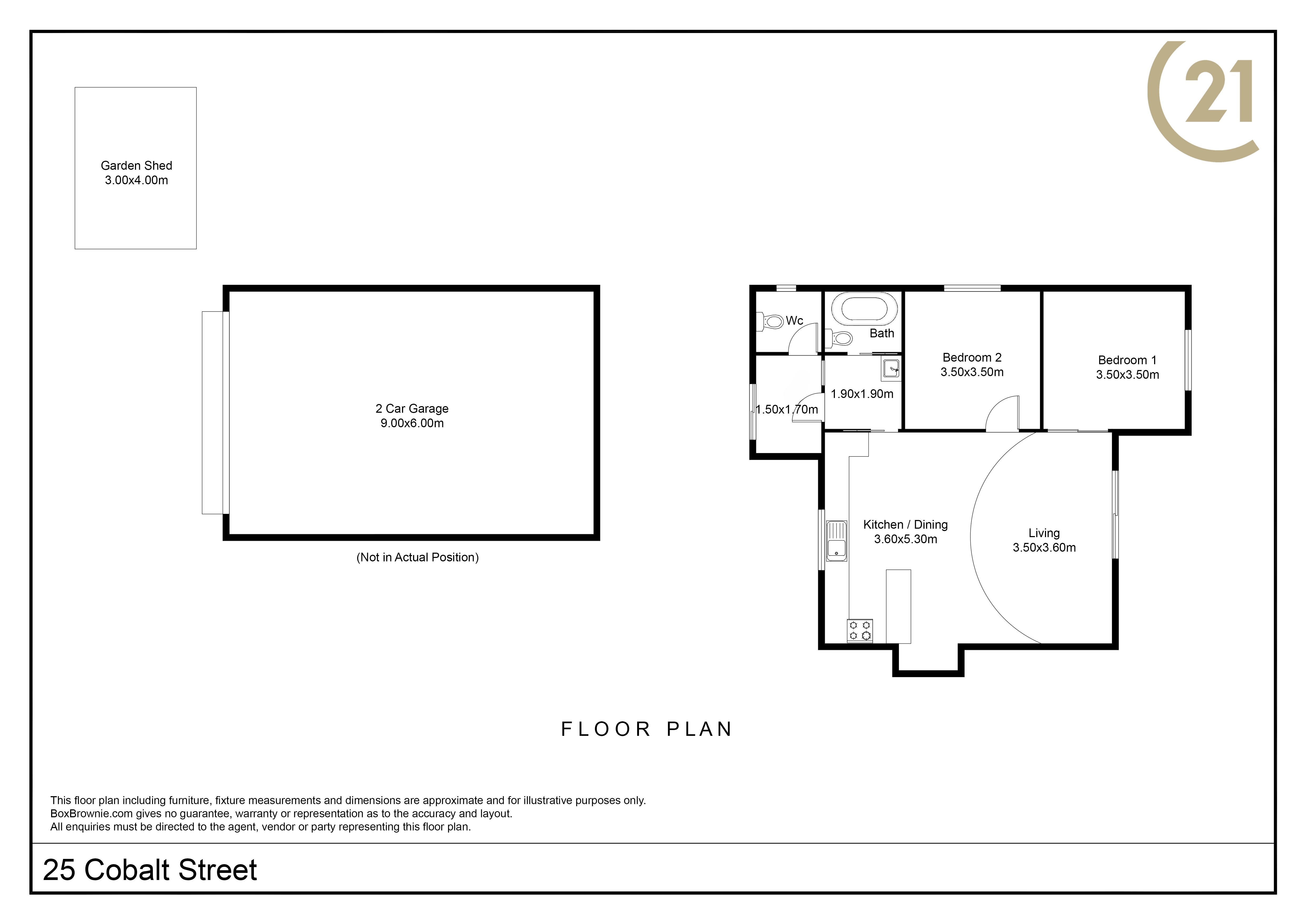 25 Cobalt Street presents a tidy two bedroom home ideally located to local shopping complex. The home offer entrance to the lounge room which is kept comfortable year round by reverse cycle heating and cooling. There are two bedrooms both with ceiling fans. The kitchen has ample cabinetry and bench space as well as a large window allowing plenty of natural light and space for casual dining. The bathroom has a combined shower and bath and vanity, separate laundry and WC. External improvements to the 483m2 (approx.) parcel of land include rear vehicle access to a 6m x 9m (approx.) shed with concrete floor and carport. The yards have been developed for a low maintenance lifestyle. Contact Century 21 McLeods to book your inspection of 25 Cobalt Street today.