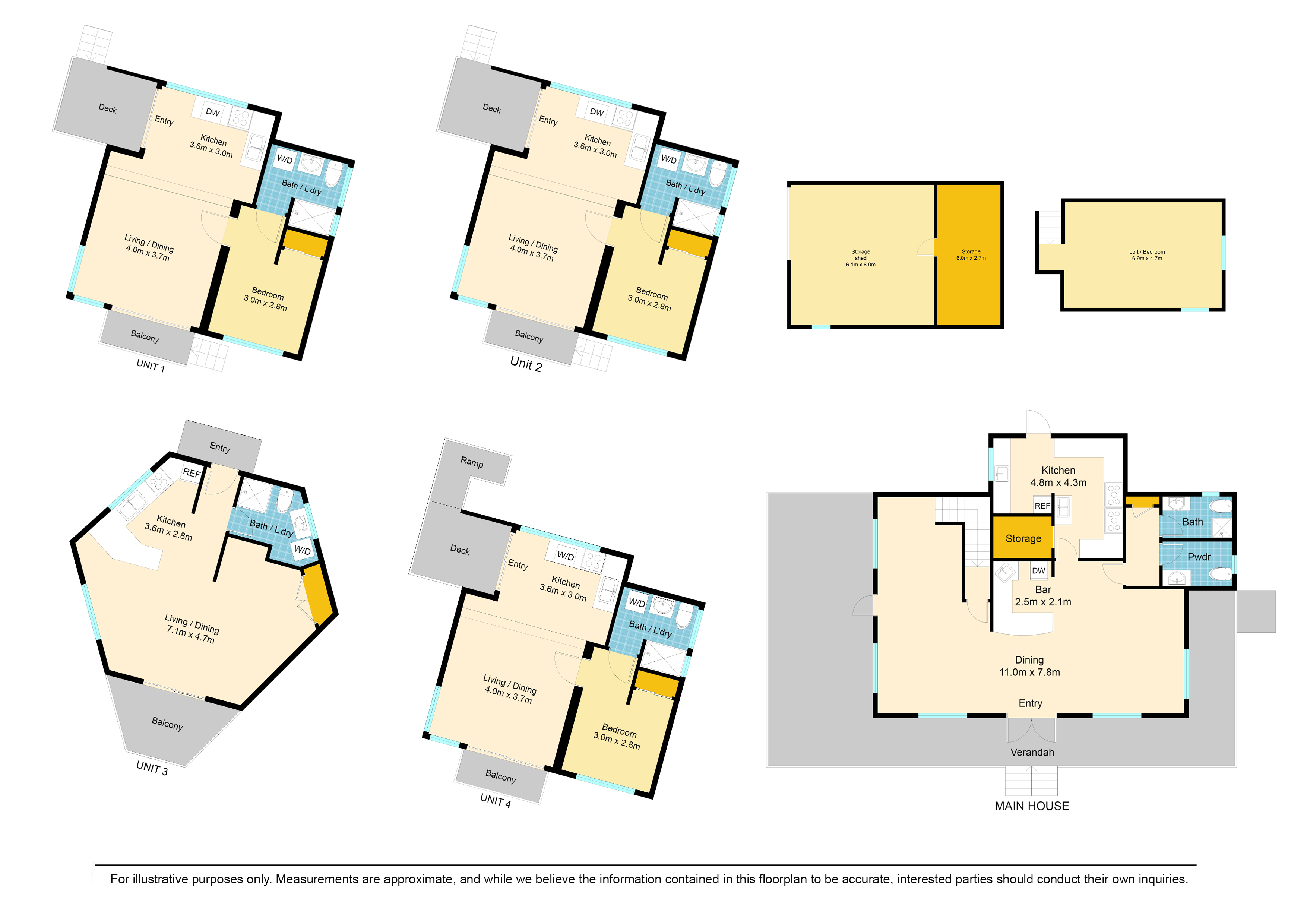 Ideal for short-stay accommodationPrivate and well-positioned across the propertyOpportunity to strata title dwellings separately (STCA)Maybe even potential for subdivision (STCA)There were once plans for five additional studio apartments plus a three-bedroom home with units underneath — highlighting the significant future development potential (STCA).