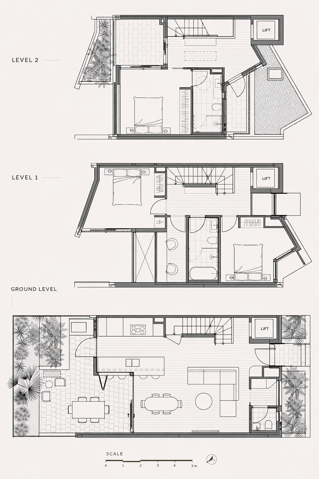 Sun-drenched open-plan living and dining areas flow seamlessly to a private courtyard — a stylish, low-maintenance outdoor sanctuary perfect for entertaining or quiet relaxation. A discreet internal lift connects all three levels from the secure basement, ensuring unrivalled comfort and convenience.