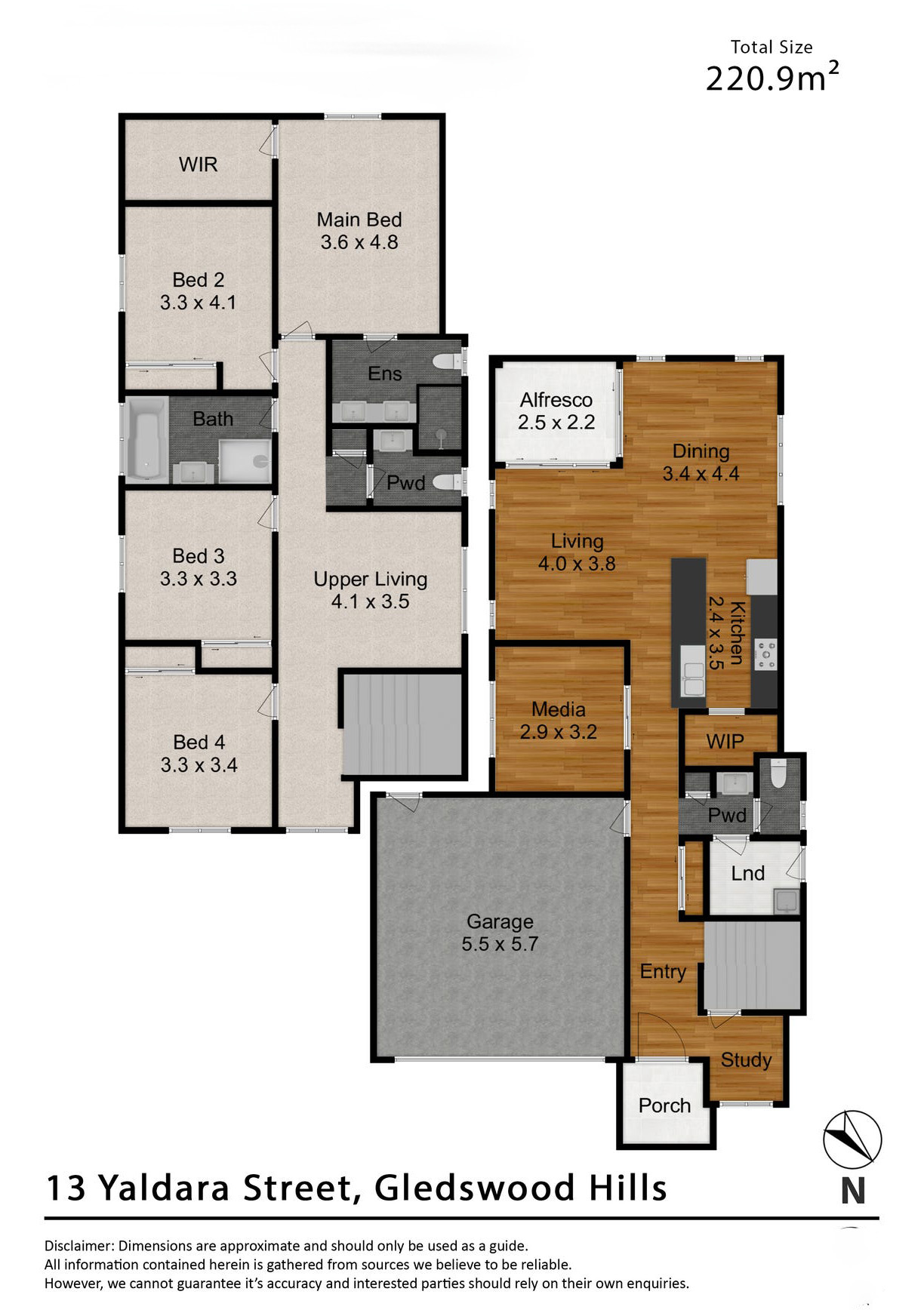 Four generous bedrooms with built in robesMaster bedroom features ensuite and walk in robeAdditional living area upstairs, perfect for the kidsBedrooms with fans and ducted air-conditioning Second bathroom split with separate powder roomOpen plan kitchen, dining, and living area Kitchen with quality gas appliances, fridge, and dishwasherAdditional areas include study/office nook, and media roomDouble lock up garage with internal and backyard accessLow maintenance backyard with alfresco area