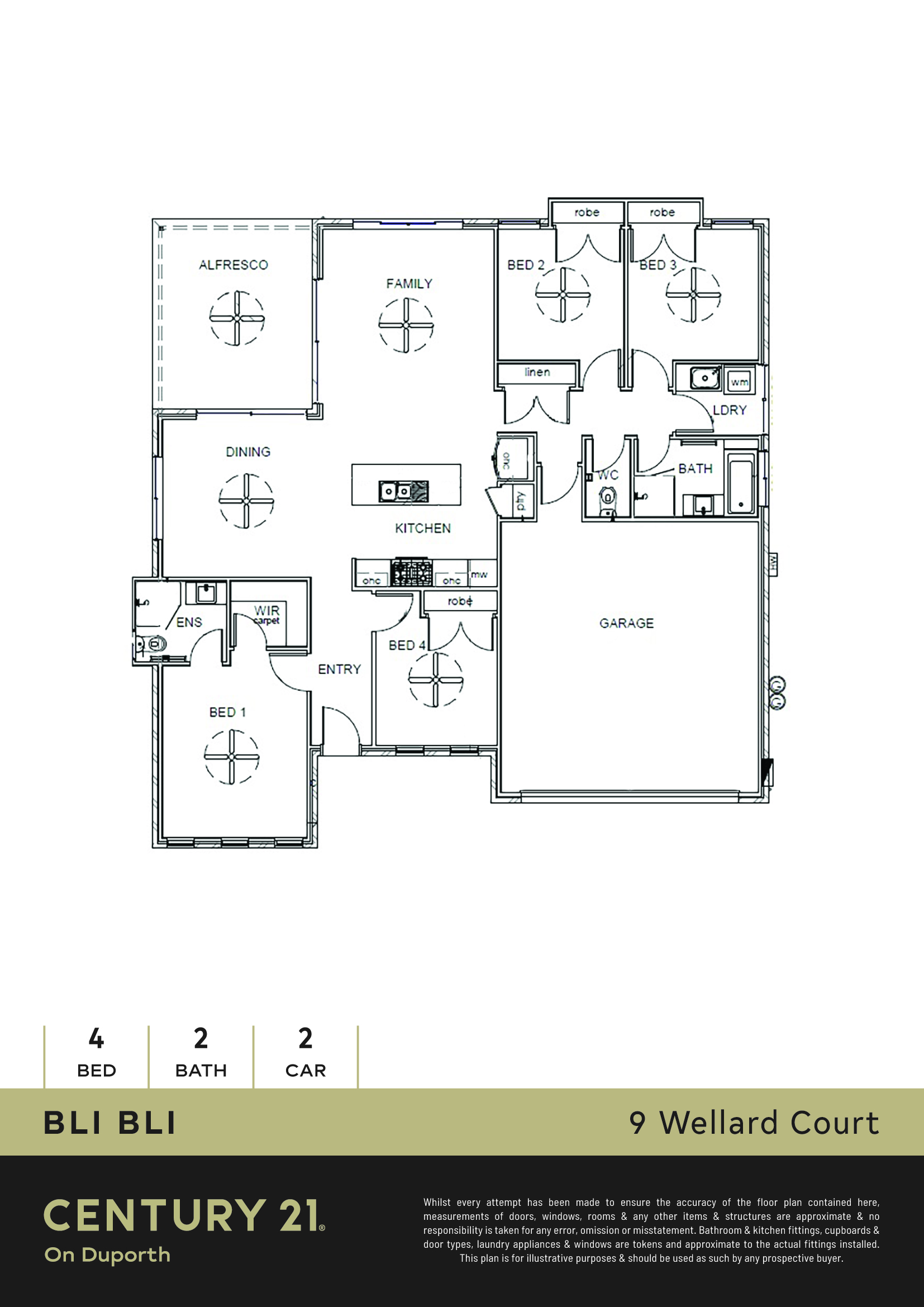 Designed with modern family living in mind, the home features four well-appointed bedrooms, all with built-in wardrobes and ceiling fans, while the master suite offers a private retreat with a walk-in robe and contemporary ensuite. The home includes ducted air conditioning throughout, ensuring year-round comfort, and ceiling fans to assist with natural airflow.